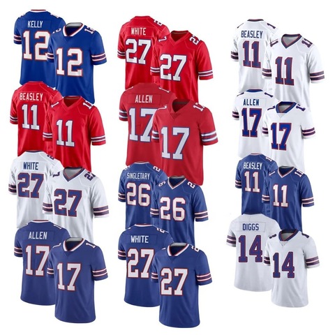 เสื้อเจอร์ซีย์อเมริกันฟุตบอลแบบขายส่งสำหรับทุกเพศทุกวัย ทีมบัฟฟาโลบิลส์ NFL เสื้อกีฬา หมายเลข 17 อัลเลน 4 คุก 40 มิลเลอร์ 88 น็อกซ์ แบบเย็บ